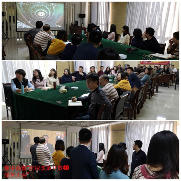 2018年12月18日上午,根據(jù)委辦公室通知要求,我院組織全體干部職工觀看了《慶祝改革開放40周年大會》的電視直播,學(xué)習(xí)習(xí)近平總書記在大會上的講話,觀看直播后職工就大會內(nèi)容進(jìn)行討論發(fā)言。