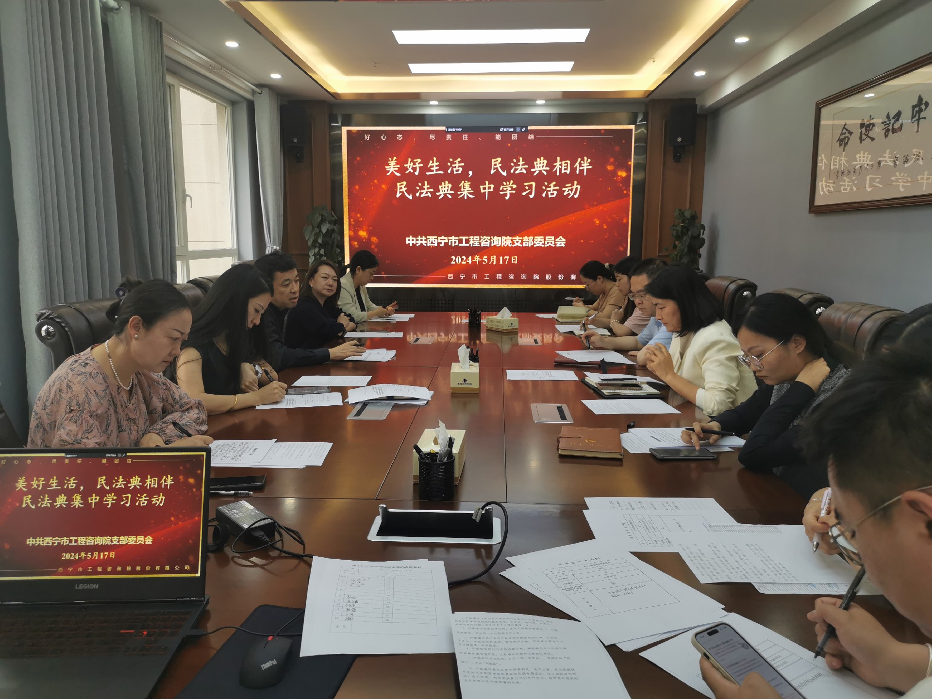 為貫徹落實(shí)習(xí)近平總書(shū)記關(guān)于“法制是最好的營(yíng)商環(huán)境”重要論述,根據(jù)西寧市發(fā)展和改革委員會(huì)相關(guān)通知精神,按照咨詢?cè)狐h支部工作部署,結(jié)合咨詢?cè)簩?shí)際情況,5月17日下午咨詢?cè)狐h支部積極組織支部黨員在院會(huì)議室開(kāi)展了“美好生活.民法典相伴”民法典集中學(xué)習(xí)活動(dòng)。